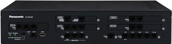 Khung chính tổng đài KX-NS300 có tích hợp sẵn: (6 công trung kế và16 cổng máy nhánh) - Khung phụ tổng đài KX-NS320 (16 cổng máy nhánh) - Card kết nối khung phụ KX-NS5130 - 02* Card KX-NS5174 (16 máy nhánh analog có hiện số) - 03* Card KX-NS5180 ( 6 cổng trung kế có hiện số)